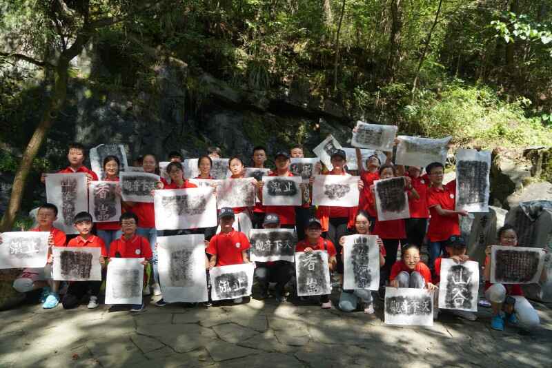 “窮幽深而不盡,坐石上以忘歸”是北宋文學家王安石用以形容山谷流泉美景的經典詩句。在這里,營員們不僅體驗到了青山綠水木橋溪流構成的靜謐之美,還感受到了石刻上的文化與藝術:在長達1500余米的山谷兩岸的石壁上,自唐代至今留存的名家文人石刻將近400方,琳瑯滿目,美不勝收。走在歷代書法藝術長廊之中,仿佛再現(xiàn)了古代文人墨客徜徉于此,物我兩忘,題辭勒石的場景……營員們還合作體驗了拓片的制作,在鍛煉動手能力的同時親近了中國傳統(tǒng)文化,感受了中國書法魅力。