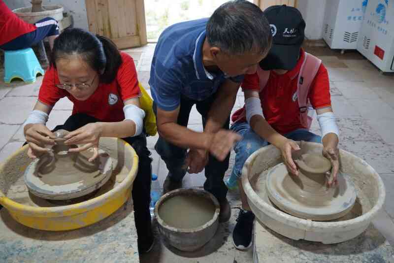 潛山市痘姆鄉(xiāng)素有“千年陶瓷之鄉(xiāng)”的美稱,陶器手工技藝距今已有6000多年的歷史,堪稱制陶史上的活化石。走進痘姆古陶,首先映入眼簾的是建于清代的龍窯,每個入火口都堆積了許多柴火,近處可感受到火的炙熱溫度。走進屋內,可見眾多精美的古陶制品擺放在木架上,富有文藝復古氣息。營員們在陶藝師傅的指導下,親自體驗了制胚過程,看到自己親身制作的泥坯作品展示在眼前時,無不興奮激動,這既能感受到傳統(tǒng)文化的藝術魅力,也能激發(fā)他們爭做非物質文化遺產繼承人的決心。
