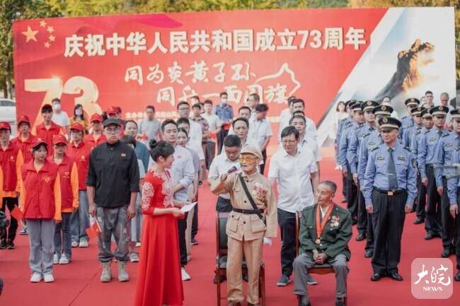 升旗儀式上,抗美援朝老兵面對“保家衛(wèi)國 中國人民志愿軍抗美援朝72周年”大型畫板心情激動(dòng),現(xiàn)場重溫了他們在戰(zhàn)場上殊死戰(zhàn)斗的不凡經(jīng)歷和感人故事。