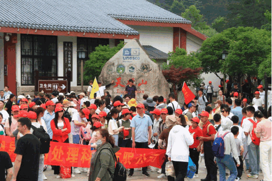 “中國旅游日”當(dāng)天,天柱山風(fēng)景區(qū)舉辦了“文明旅游、詩畫天柱、幸福中國”—全國旅游直通車萬人共攀天柱峰活動,迎來了來自省內(nèi)外直通車共計(jì)百余輛。